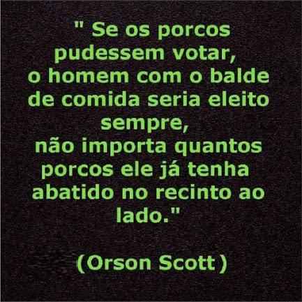 PARA REFLEXÃO: Se os porcos soubessem votar, o homem com balde cheio de comida seriam sempre eleito!